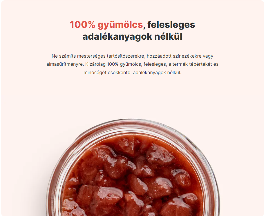 Válogatott dzsemek, kiváló ízzel és hozzáadott cukor nélkül. Élvezheted a palacsintádon, a fánkodon, a gofrin, zabkásához vagy joghurthoz is keverheted.