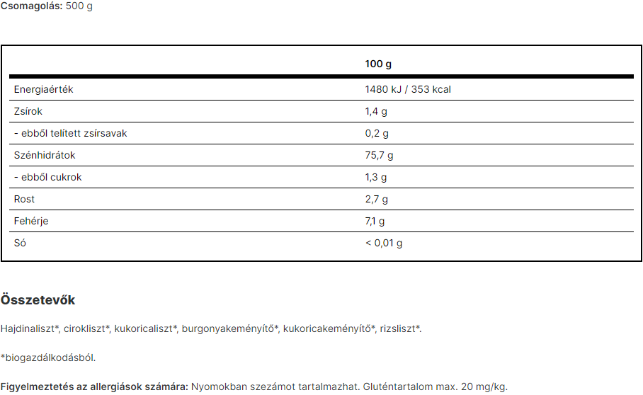 hajdina-, cirok-, kukorica- és rizsliszt keveréke, finom állagú, ideális édes sütéshez