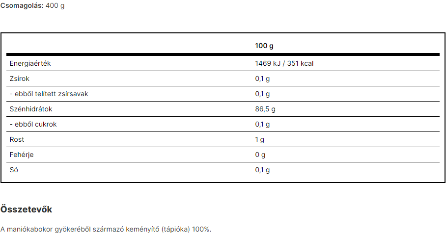 Vilgain Tápiókaliszt pontokban: